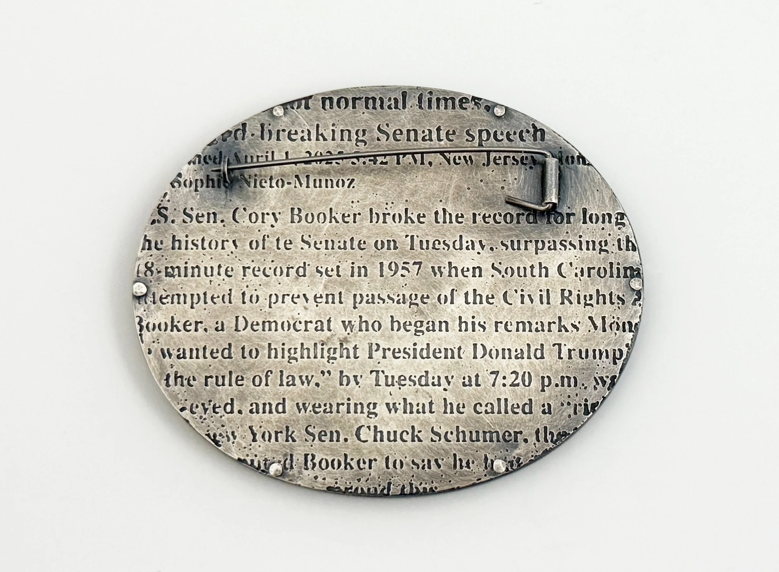 Shop Categories: All Book Jewelry Necklaces Brooches Bracelet Rings Objects Candlesticks Goblets & Cups Hanukah Menorah Mezuzah Torah Pointers Shop All | Book | Jewelry | Objects | Brooches for 2025: Think While Its Still Legal $480.00 Brooches for 2025: Democracy Dies When We Remain Silent $480.00 Women Power Shield (1) $360.00 Brooches for 2025: Senator Cory Booker $480.00 Brooches for 2025: Senator Elizabeth Warren $480.00 Brooches for 2025: Senator Bernie Sanders $480.00 Brooches for 2025: Supreme Court Justice Sotomayer Dissents $480.00 Brooches for 2025: Supreme Court Justice Jackson Dissents $480.00 Papaver orientale (candlesticks) $5,600.00 Water $1,800.00 breathe 11 $2,400.00 Beach Ring $360.00 Forged Druzy Quartz Ring $360.00 Trillium sessile Key $1,200.00 Herbarium Specimen Ring: Gypsophila elegans (Baby's Breath seeds) $120.00 Herbarium Specimen Ring: Tribulus terrestris (Goat Heads) $120.00 Herbarium Specimen Ring: Asclepias tuberosa $120.00 Herbarium Specimen Ring: Cyclamen persicum $120.00 Herbarium Specimen Ring: Crocus vernus $120.00 Herbarium Specimen Ring: Gerbera jamesonii $120.00 Herbarium Specimen Ring: Rosa eglanteria (thorns) $120.00 body in motion: play (ring 1) $360.00 body in motion: play (ring 2) $360.00 body in motion: play (ring 3) $360.00 Loss of Innocence 16 $540.00 Loss of Innocence 18 $420.00 Loss of Innocence 14 $420.00 Loss of Innocence 15 $420.00 Loss of Innocence 20 $420.00 Loss of Innocence 19 $420.00 Loss of Innocence 13 $420.00 Loss of Innocence 11 $1,200.00 body in motion: gravity 5 $1,200.00 body in motion: gravity 2 $1,200.00 body in motion: study 1 $1,600.00 body in motion: study 2 $2,400.00 body in motion: tracers (bracelet 1) $520.00 body in motion: tracers (bracelet 2) $520.00 body in motion: tracers (ring 1) $240.00 body in motion: tracers (ring 2) $240.00 White Collar 7 $300.00 White Collar 14 $460.00 White Collar 13 $300.00 White Collar 12 $460.00 Sterling Silver Riveted Ring $85.00 Mended River Rock Ring $120.00 Glass Ring $80.00 Light in the Darkness 3 (Hanukkah menorah) $3,600.00 Clouds (Hanukah menorah) $2,400.00 Rosemary (mezuzah) $540.00 Through the trees (mezuzah) $540.00 The silence of the forest (mezuzah) $420.00 Forest sounds (mezuzah) $420.00 Key (mezuzah, 2022-4) $640.00 Tikkun Olam 7 (mezuzah) $640.00 Tikkun Olam 6 (mezuzah) $640.00 Plentiful (mezuzah) $360.00 Farm(mezuzah) $360.00 Ahavath and her chick (mezuzah) $360.00 Sold out Vine Goblet $2,400.00 Tree of Life (Torah pointer) $720.00 Rosh Hashanah (Torah pointer) $1,200.00 Extendable (Torah pointer) $720.00 Wheel/Perambulator (Torah pointer) $900.00 Borders (Torah pointer) $360.00 Anika Smulovitz | Judaica $50.00 ADD-ON: Handwritten Kosher Mezuzah Scroll on Parchment Klaf $50.00